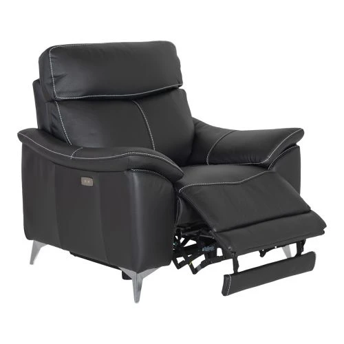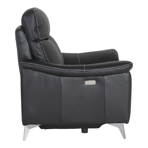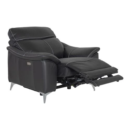 Algarve är en serie praktiska sittmöbler från vårt eget märke Mer Hemma. Här som elstyrd reclinerfåtölj i grått helläder med metallben. Kombinera gärna ned Algarve soffa med reclinersitsar för en komplett soffgrupp.