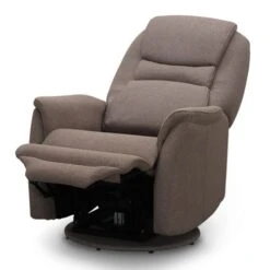 Oslo Reclinerfåtölj Elstyrd Snurrfunktion Och Lift-up Tyg Ljusbrun