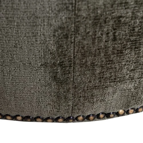 Belinda är en gedigen, rund fotpall/sittpuff från EK Furniture, här klädd i det gröna sammetstyget Harmony. De dekorativa nitarna som ramar in fotpallens nedre del är i antikfärg som påminner om oxiderad mässing. Fotpallen passar perfekt ihop med Belinda soffa i samma utförande.