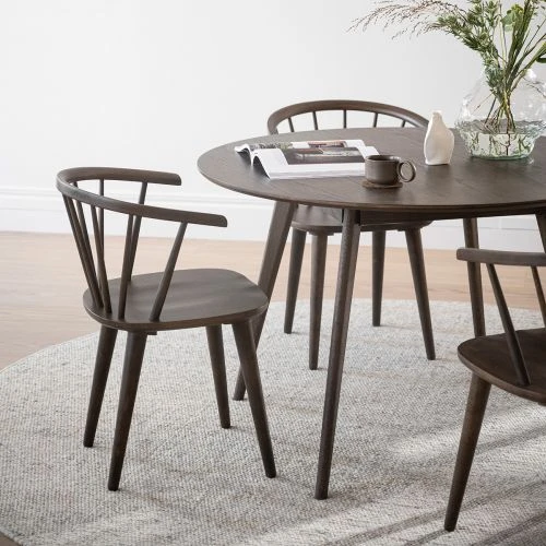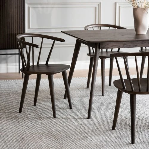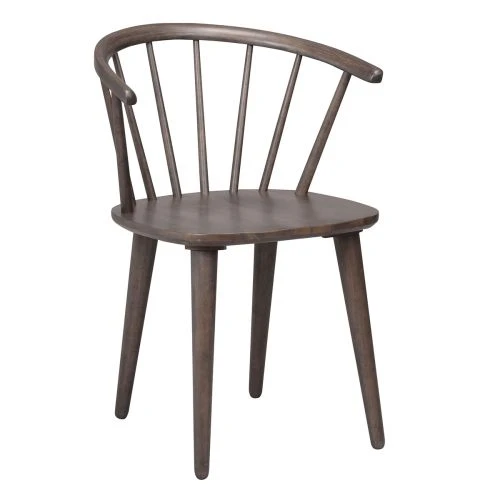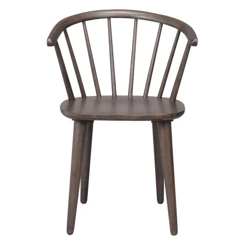 Stilren design med svängd rygg och bred sittyta – Carmen är en populär pinnstol med karm i klassisk modern design, här i trä som har brunbetsats och sedan lackats.