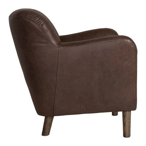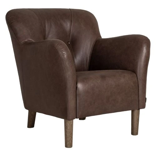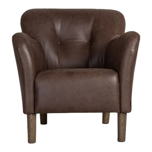 Carolina fåtölj i 70-skinn Vintage brown färg nummer 22006-67 med bruna ben i färg smoked oak. Fåtölj i nätt och stilrent utförande med läckert brunt skinn.