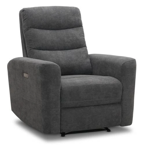 Chicago är en serie reclinersoffor och reclinerfåtöljer med fokus på komfort från svenska Haga Gruppen. Här i form av en reclinerfåtölj med elstyrd styrning av den fällbara sitsen och det höj- och sänkbara fotstödet. Fåtöljen är klädd i det gråa tyget Topeka och är utrustad med praktiskt USB-uttag.