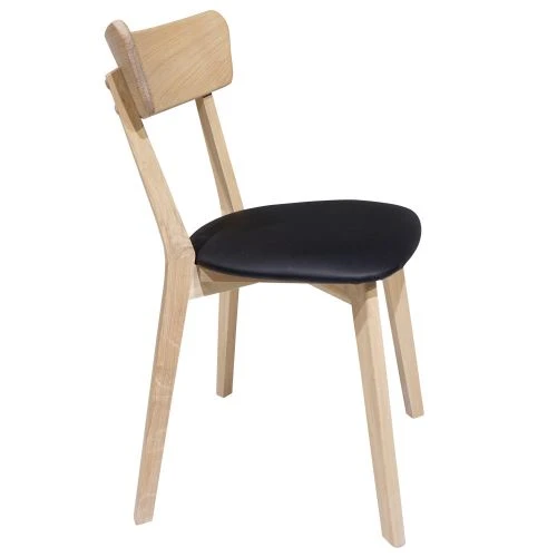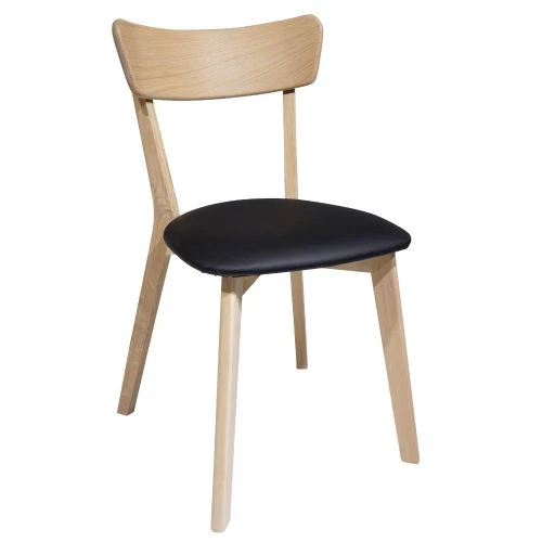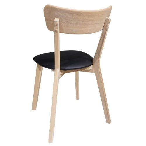 Enkel och tidlös stol med retrokänsla och sittvänlig design. Snygg stol från serien Diana. Här i utförandet vitoljad ek i kombination med svart sits i konstläder.