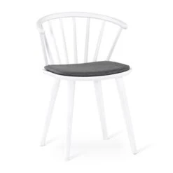 Här är Edda stol från Torkelson. Stolen är i vitbetsad ask, och har en löstagbar dyna i grått tyg. Då stolen är handgjord kan måtten variera något. På sitsen kan man även se stolsbenen igenom då dessa är tillverkade för att efterlikna ett äkta hantverk.