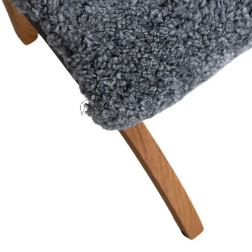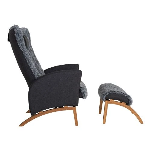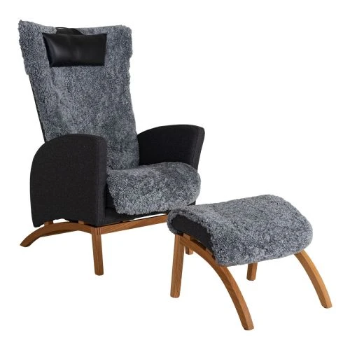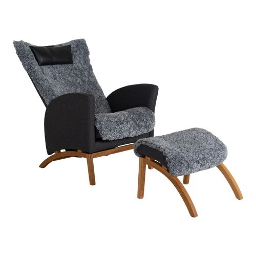 Enzo Fåtölj Med Pall Fårskinn Grå Och Fot I Ek