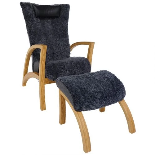 Focus Fåtölj Med Pall Fårskinn Koks Ekben