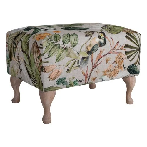 Ksoter fotpall i 5-tyg Djungle 10 beige med ben i vitoljad ek, Koster svängt.