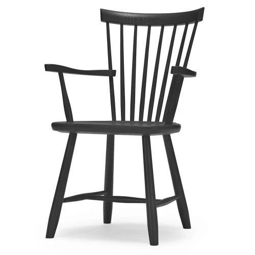 Lilla Åland – här i form av en karmstol i massiv mattsvart ek – är en sann trotjänare och en favorit som vid många tillfällen fått representera god svensk 1900-talsdesign. Inspirationen fick Carl Malmsten vid ett besök i Finnströms kyrka på Åland, där några olika pinnstolar stod uppradade. Han ritade av dessa och efter vissa egna justeringar och kompletteringar, typiska för Carl Malmstens stil, kunde en serietillverkning påbörjas.