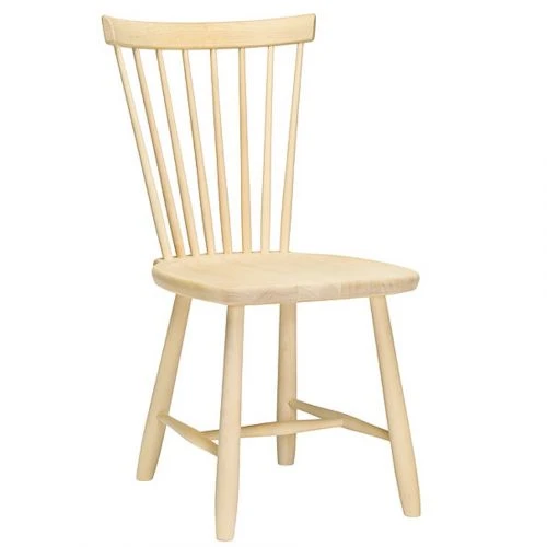 Pinnarnas avtunning uppåt bildar ett starkt, fjädrande och bekvämt ryggstöd.Skålat toppstycke förstärker bekvämligheten ytterligare.Urfräst sits för hög sittkomfort.Förstärkning i form av kryss mellan stolsbenen.