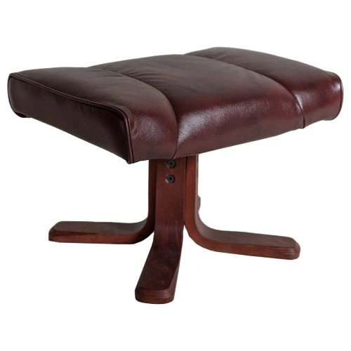 Lotus är en prisvärd, svensktillverkad fotpall från Möbelform, här i läder/konstläder i den vinröda nyansen antik oxblod. Fotpallen har kryssfot i mahognybetsat trä. Fotpallen passat till Lotus fåtölj i samma utförande.