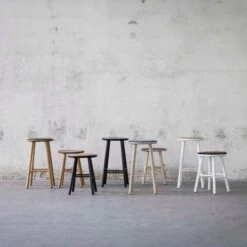 Meja pall i massiv oljad ek med sits i mörkgrått fårskinn.