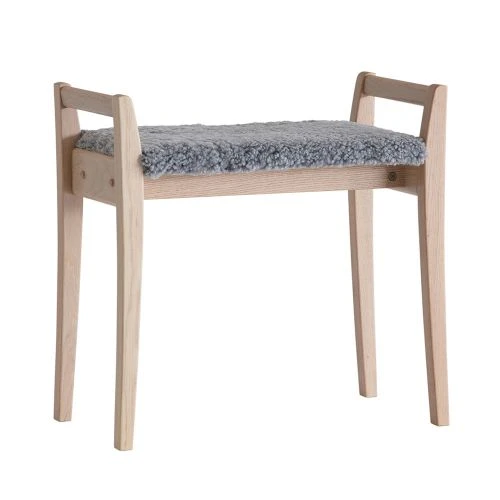 Meja pall i massiv oljad ek med sits i ljusgrå fårskinnslook.