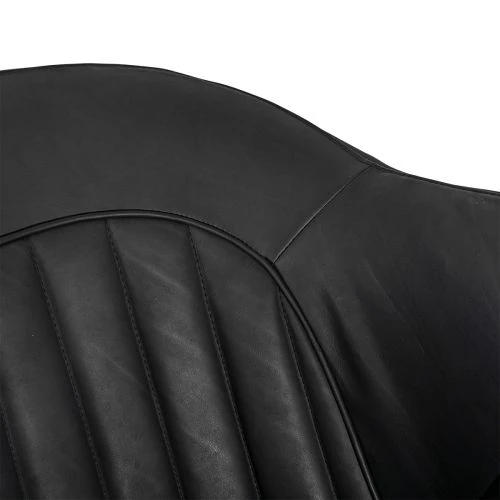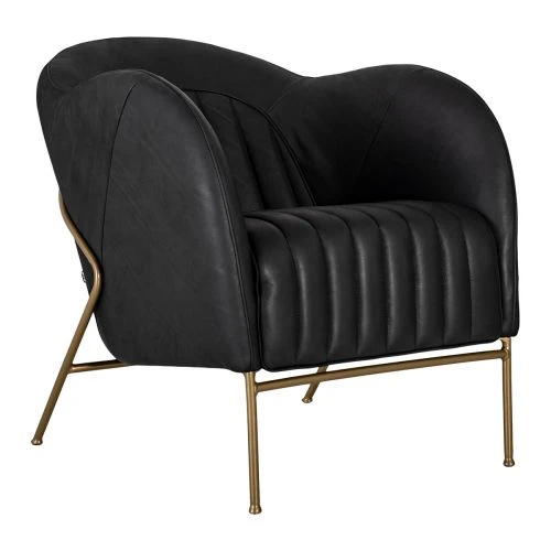 Mini är en nätt och elegant fåtölj med retroinfluencer, här med ben i mässingsfärgad metall och klädsel i svart läder. Den rundade formen, benställningens utformning och sittytans vertikala sömmar är väldesignade detaljer som ger Mini en unik look.