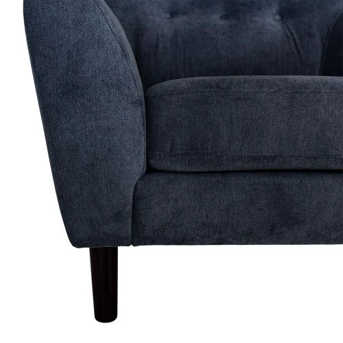 Monza är en serie retroinspirerade sittmöbler från Burhéns, här i form av en fåtölj med knappad rygg, lätt snedställda ben och tjock sittdyna. Fåtöljen är klädd i ett blått tyg med härlig struktur och har ben i den mörkbruna färgen colonial. Kombinera med soffa och fotpall från samma serie för en enhetlig stil i vardagsrummet.