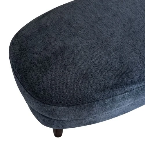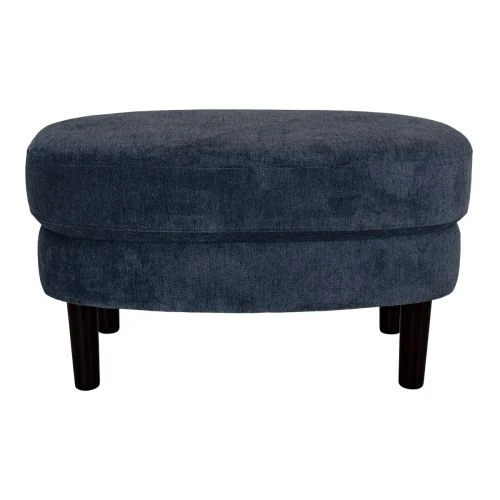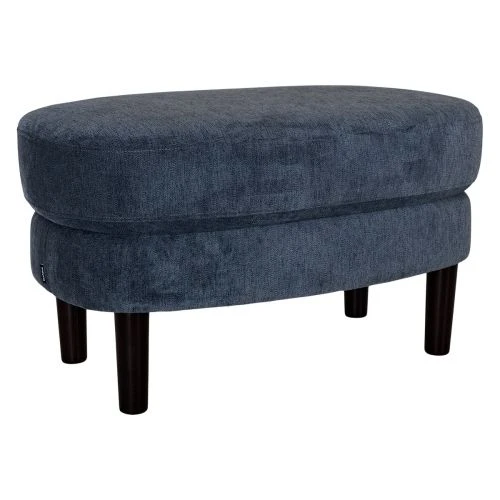 Monza är en serie retroinspirerade sittmöbler från Burhéns, här i form av en oval fotpall. Fotpallen är klädd i ett blått tyg och har ben i den mörkbruna färgen colonial. Kombinera med soffa och fåtölj från samma serie för en enhetlig stil i vardagsrummet.