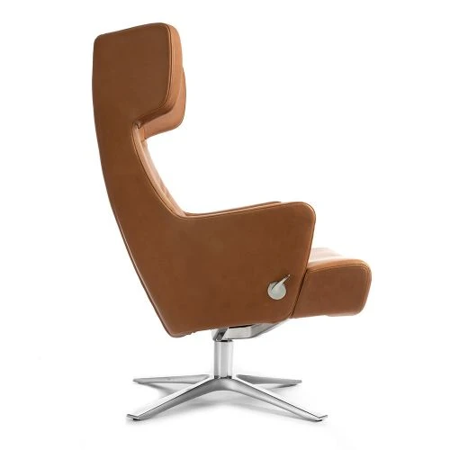 Myplace är en högkvalitativ fåtölj i design av Jahn Aamodt för Conform, här i konjaksfärgat läder och med fot i aluminium. Den fällbara ryggen med heltäckande stöd för både rygg och nacke ger en hög sittkomfort. Komplettera gärna med en fotpall för extra avlastning!