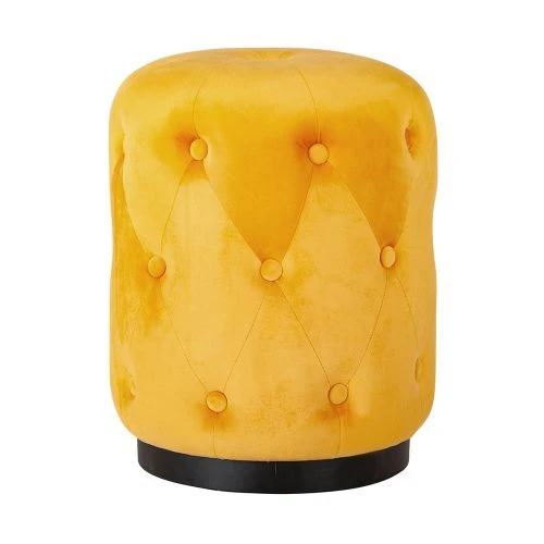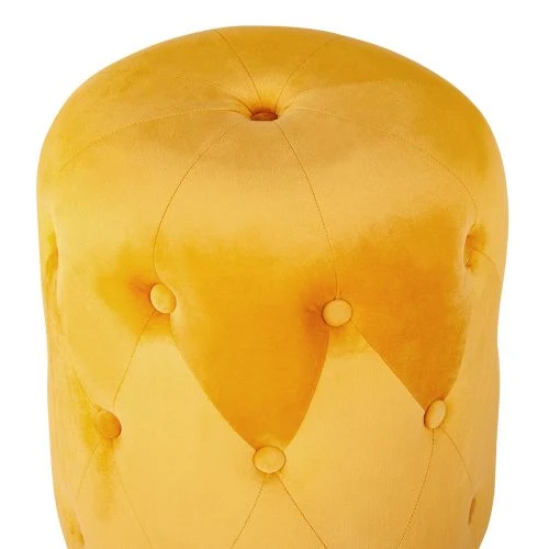 Nina är en knappad pall i sammet och lika mycket inredningsdetalj som en praktisk, extra sittplats. Här i gult utförande.