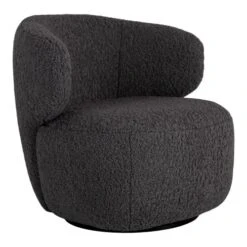 Odense är en serie trendiga sittmöbler med en touch av retro. Här i modell snurrfåtölj med rundad rygg och rundade armstöd. Fåtöljen är klädd i ett grått teddytyg som påminner om fårskinn i sin struktur. Komplettera med Odense fotpall för extra komfort.