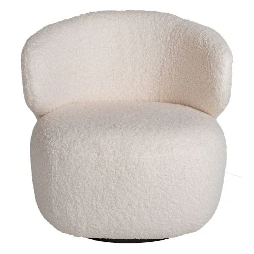 Odense är en serie trendiga sittmöbler med en touch av retro. Här i modell snurrfåtölj med rundad rygg och rundade armstöd. Fåtöljen är klädd i ett naturvitt/varmtvitt teddytyg som påminner om fårskinn i sin struktur. Komplettera med Odense fotpall för extra komfort.