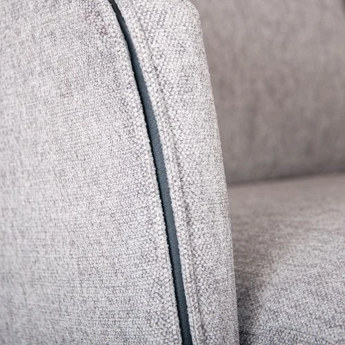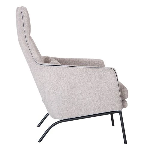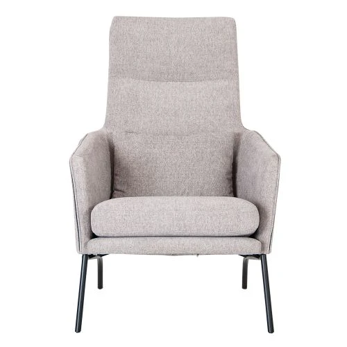 Siri fåtölj i 3-tyg Stipa 6 grå med detaljer i svart läder touch 6 black. Ben i svart metall. Fåtöljen har comfort standard och kallskum i sitsen.