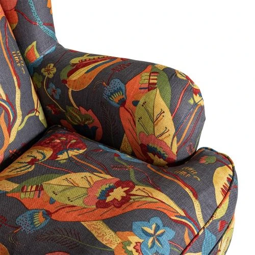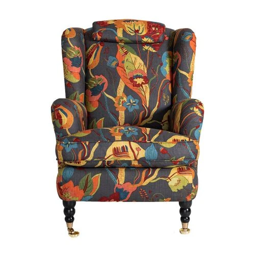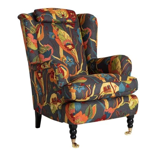 William large är en öronlappsfåtölj i klassiskt utförande. Tyg Cailfornia koks 09 med svartbetsade ben Classic 17 cm med mässingshjul framtill med koppar. Sittplymå i 80% riven polyeter med 20% sjöfågel. Sittstomme av en massiv träram med bärande väv och dubbellaminerad polyeter. Ryggstomme av en massiv träram med fast rygg. Formsågad kallskum och polyesterfiber 300 gram.