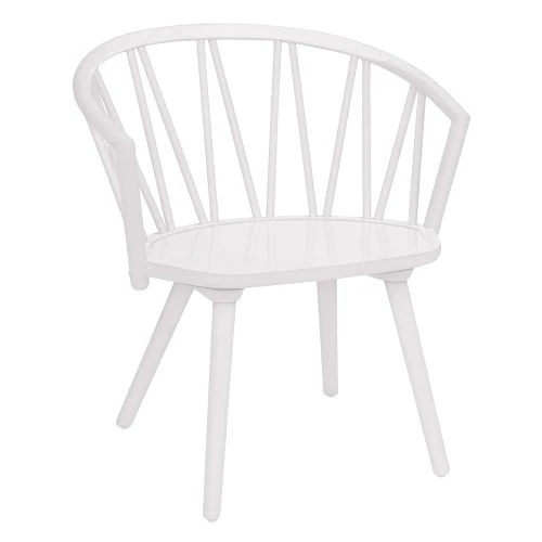 Här är en stol i loungemodell. Stolen är av massiv bok och är vitlackad.